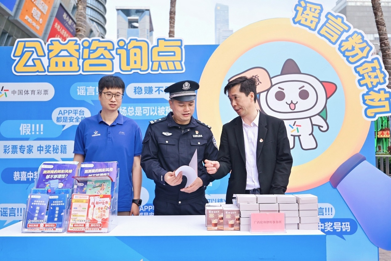 公安民警、体彩工作人员、志愿律师组成专业团队提供公益咨询(广西体彩中心供图)